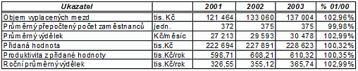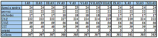 V první polovině roku 2003 stavy zaměstnanců stagnovaly kolem počtu 387, v závěru roku se snížily na 383, tedy o 4 zaměstnance méně než k 1. lednu.