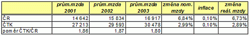 V roce 2004 předpokládáme tempo růstu průměrného výdělku v rozmezí dvou až tří procent.