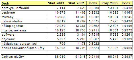 Podíl nákladů na řízení a správu v roce 2003 vzrostl o 0,2 bodu na 5,40 %, podíl nákladů na provoz budov ze zvýšil o 0,4 procentního bodu a dosáhl 8,61 %. Zvýšení podílu těchto kategorií souvisí s poklesem celkových nákladů - tyto kategorie mají větší setrvačnost.