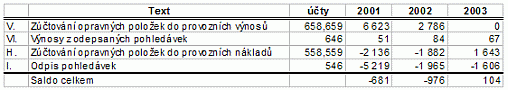 Operace, které byly provedeny v rámci účetní závěrky, v tomto roce hospodaření nijak významně neovlivnily. Jednalo se pouze o tvorbu a zúčtování opravných položek k pohledávkám a odpisy pohledávek. Vzhledem k tomu, že vyhláškou 500/2002 Sb. byly změněny postupy účtování, neobjevuje se již zúčtování opravných položek ve výnosech, ale snižuje náklady.