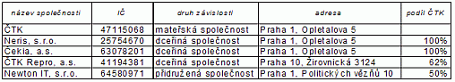 Do konsolidačního celku nebyla zahrnuta účast v Economia, a.s. z toho důvodu, že v ní ČTK drží pouze minoritní podíl ve výši 11 %.
