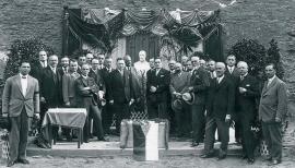 Slavnostní položení základního kamene budovy ČTK v Opletalově (tehdejší Lützowově) ulici v Praze v roce 1928.