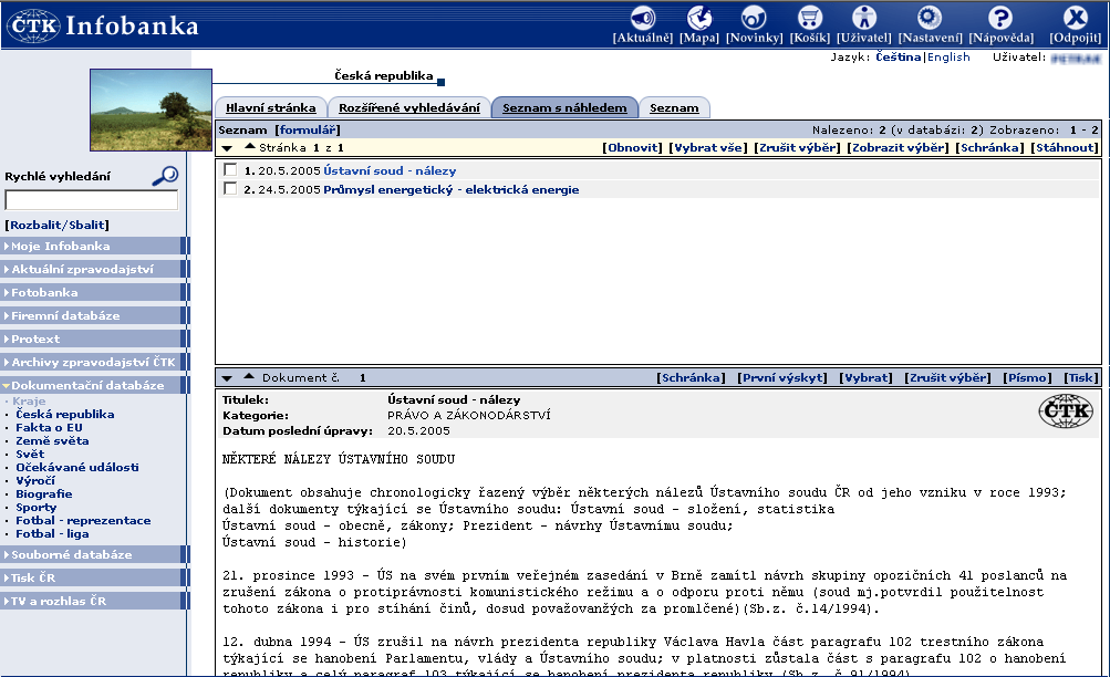 V případě zájmu o Dokumentační databázi nebo o podrobnější informace kontaktujte, prosím, obchodní oddělení ČTK: poslat e-mail.